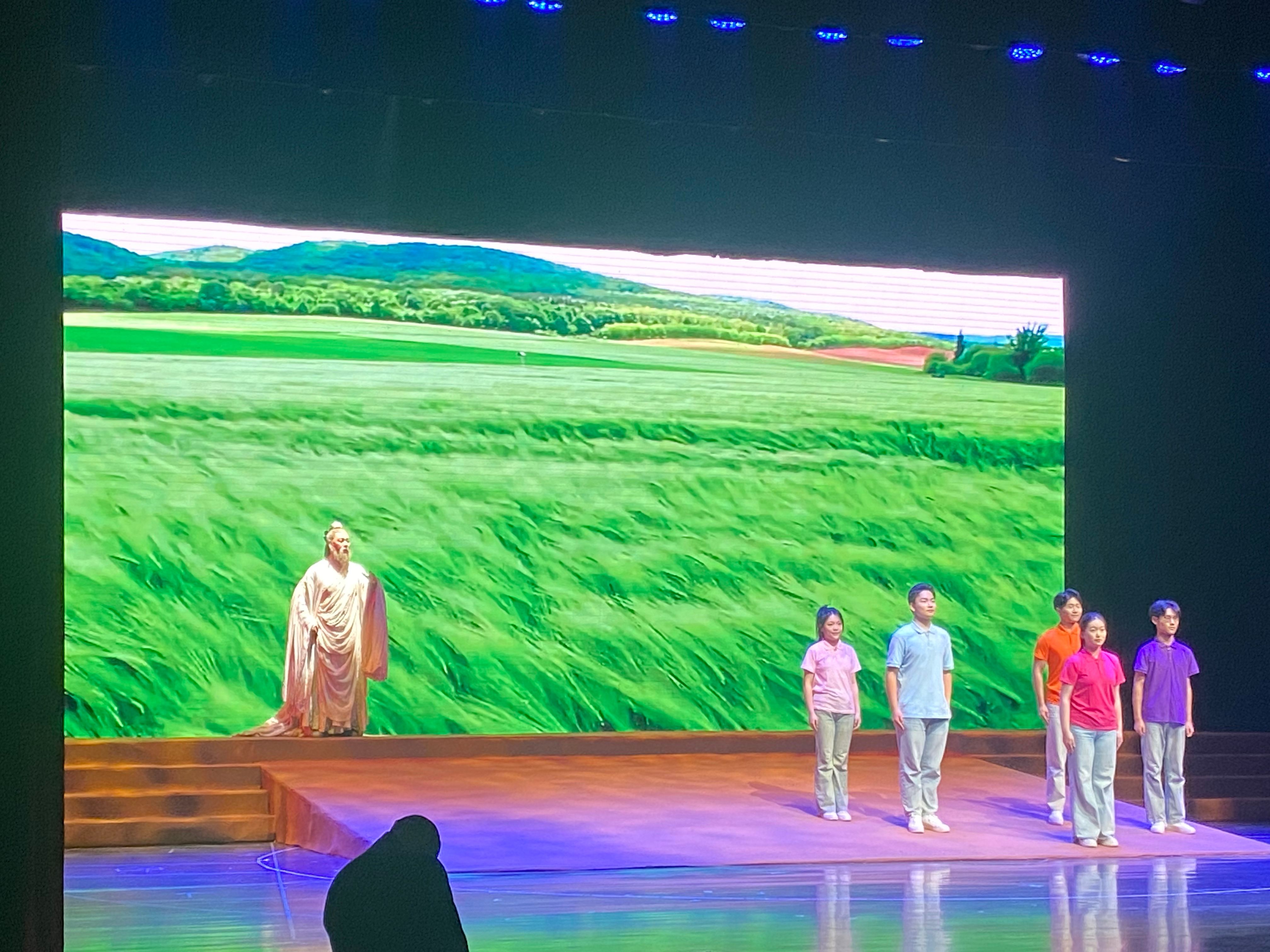 该作品以齐鲁文化为底蕴,融合历史人物与经典思想,通过情景剧与朗诵相结合的创新形式,借助音乐、服装、道具等舞台元素,生动演绎了一场跨越千年的文化对话。作品内容紧扣“齐风鲁韵·阅创华章”的大赛主题,既有文化深度,又具时代气息,展现了山东工业职业学院学子对齐鲁文化的深刻理解与创意表达。