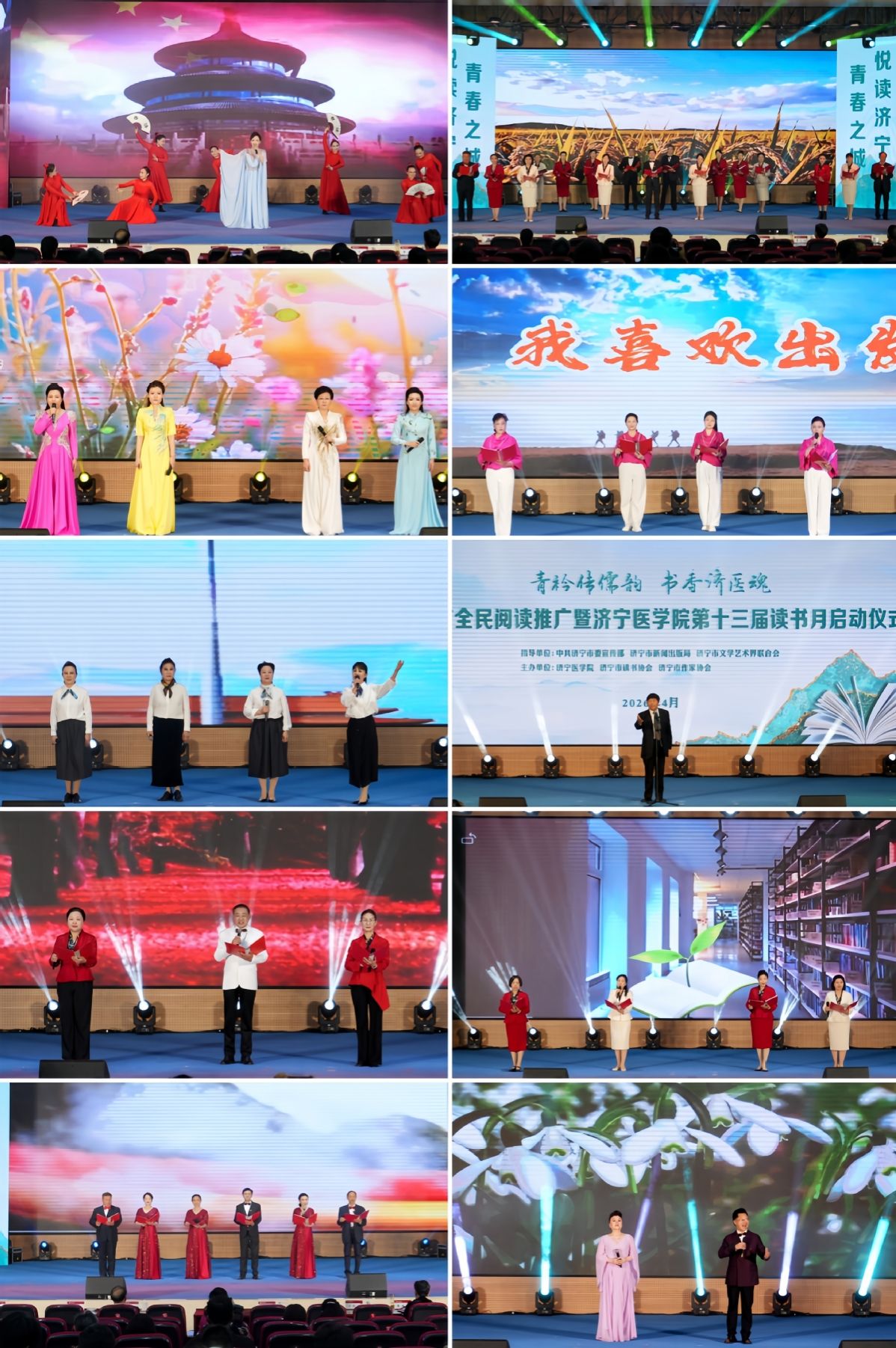 启动仪式后,杨义堂带来《大运河文化》专题讲座,为现场师生带来丰富的文化盛宴。随后,诗歌朗诵音乐会精彩上演。开场歌舞《书香满中华》拉开演出序幕,《书香济宁》《人间四月,橡树花开》《锦绣》《谁是最可爱的人》《读中国》等经典篇目轮番呈现,朗诵者们以声传情、以情颂读,用声音传递文字力量,用诗歌点亮心灵灯火,充分展现阅读与艺术融合的独特魅力,赢得现场阵阵掌声。